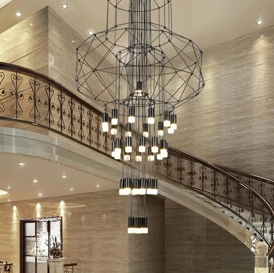 Modern minimalist hotel lobby lamps Nordic creative coffee stairs living room wrought iron geometric lines Villa chandelier