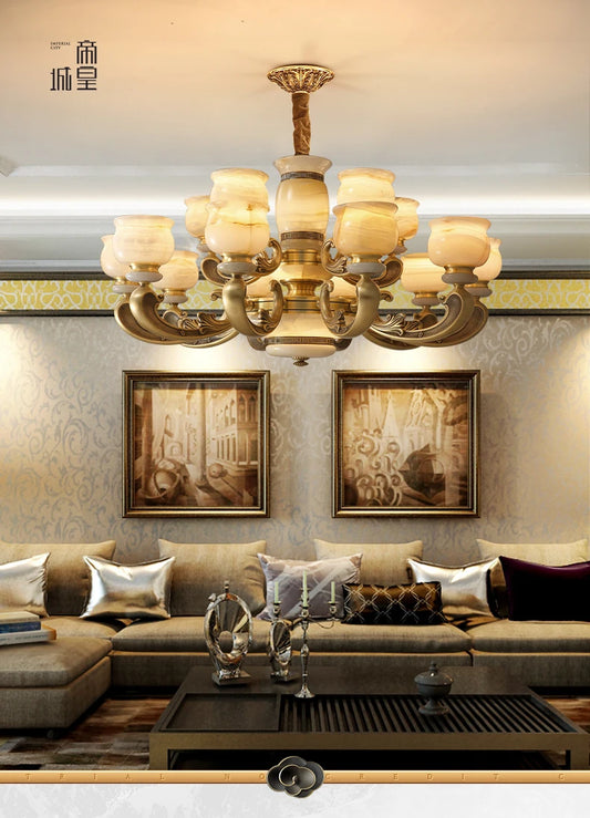 All copper marble chandelier living room dining room copper lamps light luxury modern villa hotel duplex building lighting