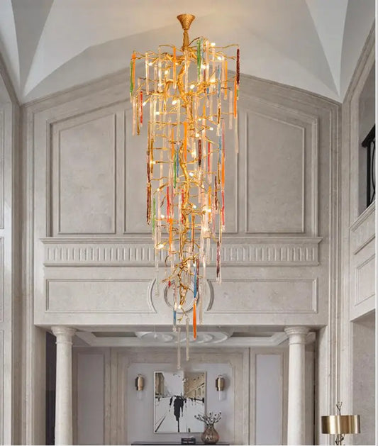 Minimalist European chandelier art villa restaurant duplex stairs light luxury style shop decoration crystal pendant lamp