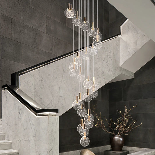 Staircase LED chandelier simple loft Nordic villa duplex creative light luxury spiral staircase glass ice long chandelier