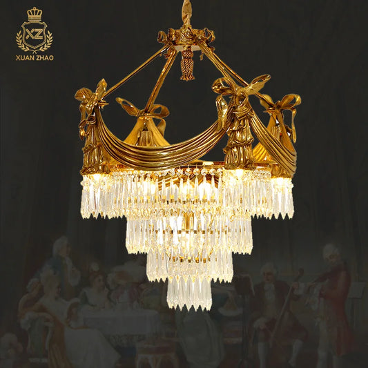 XUANZHAO French All Copper Crystal Light Luxury Villa Hotel Duplex Building Living Room Dining Room Study Chandelier