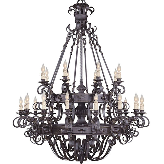 Wrought Iron Large Chandeliers Sturdy Auditorium Villa Staircase Household Lamp Ceiling Chandelier Lighting Loft Retro Candle