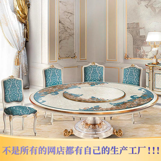 European deluxe solid wood carved table and chair combination household turntable French dining table