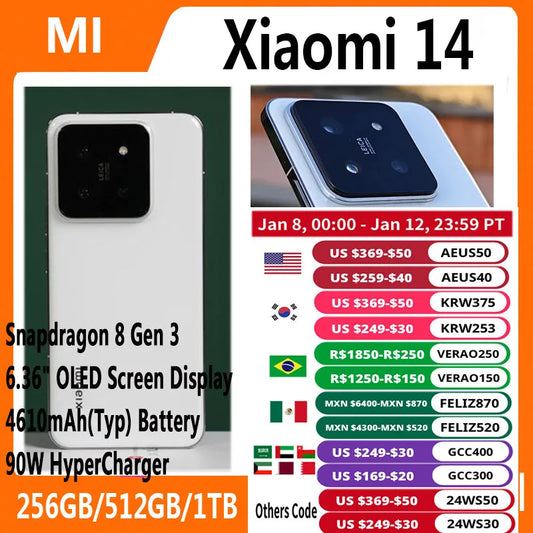 New Xiaomi 14 Mobile Phone Snapdragon 8 Gen 3 50MP Leica Camera 120HZ OLED Screen 90W Wired Second Charging