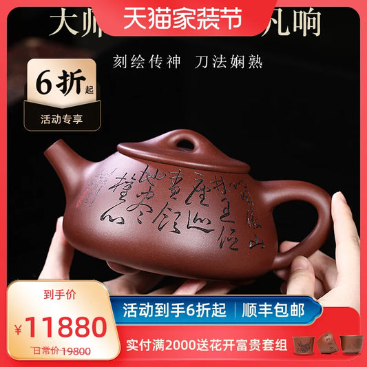 Centennial Liyong Yixing Famous Master Tan Hai Quan Carved Tan Xiaoyan Pure Handmade Purple Clay Pot Raw Ore Kung Fu Tea Set Tea