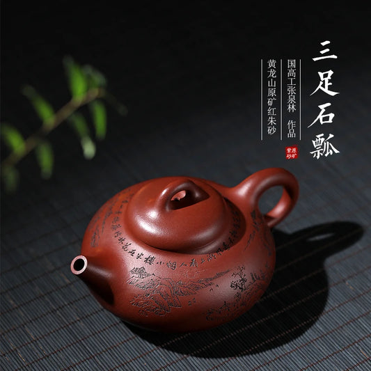 |purple clay pot Master Zhang Quanlin pure handmade Red Pearl mud stone ladle teapot tea set three legged stone ladle