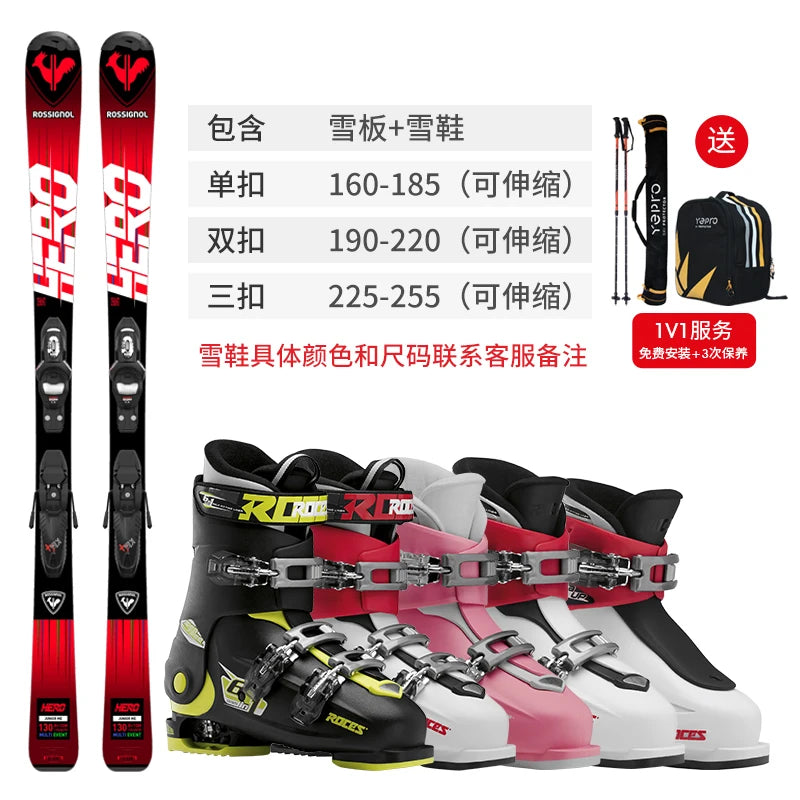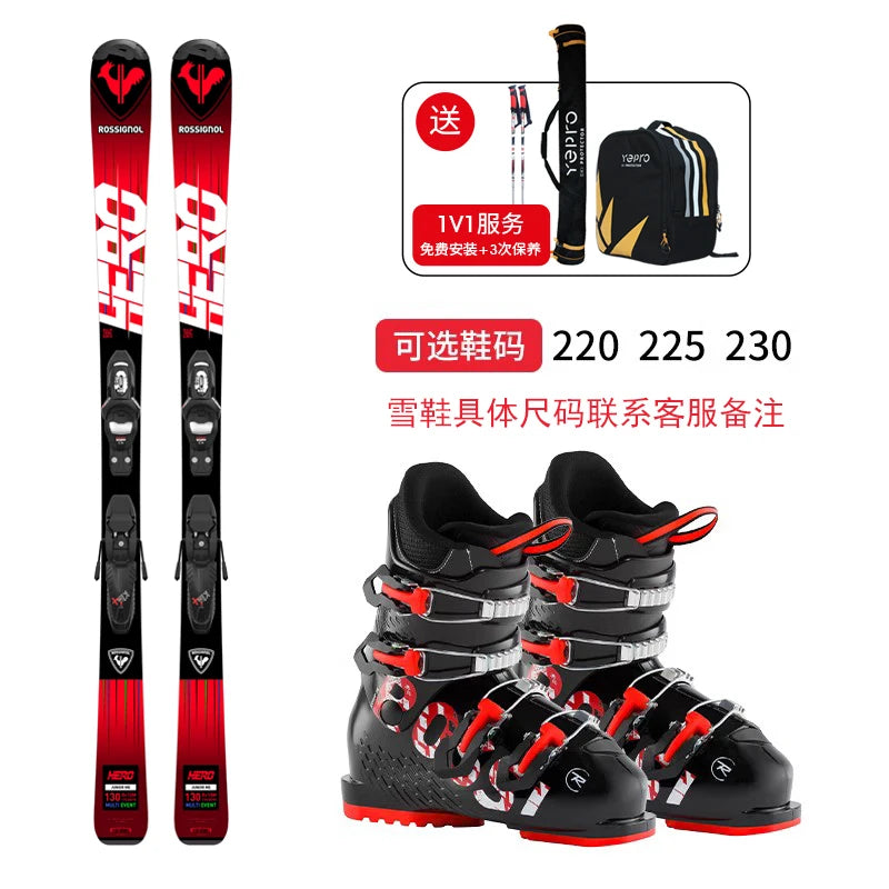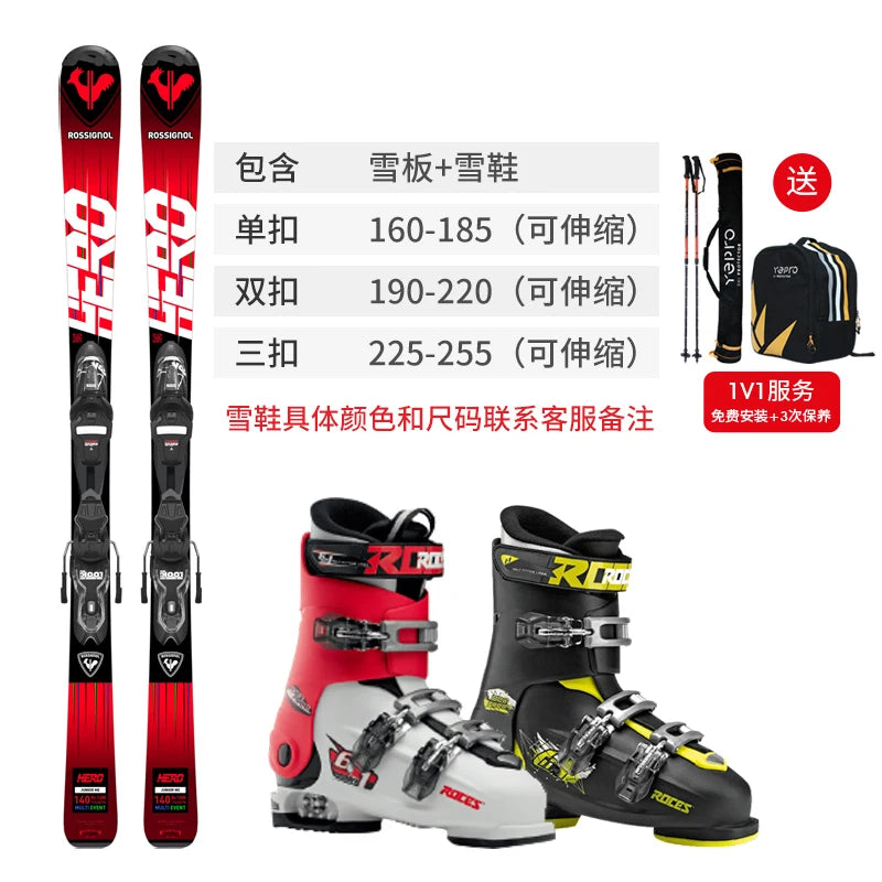 лыжные палки Rossignol France GOLDEN ROOSTER Children's Skis Double Board Set Full Set Skiing Boots Youth Ski Equipment