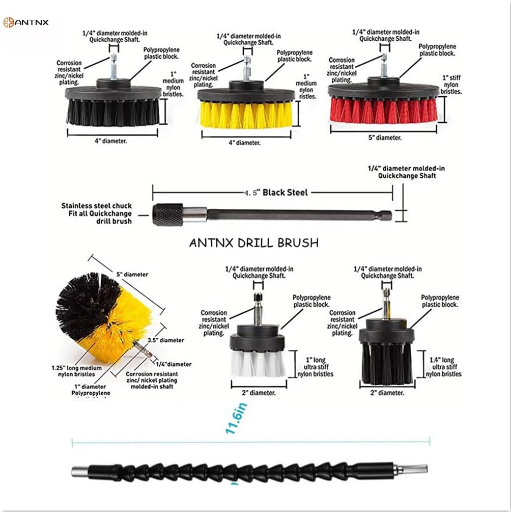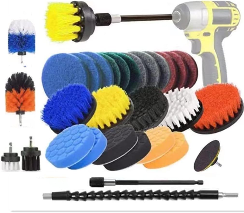 مجموعة فرشاة المثقاب من انتنكس، 31 قطعة من اللوحات غير اللامعة والاسفنجية، فرش غير لامعة للمثقاب الكهربائي، ملحقات تنظيف متعددة الوظائف مناسبة للملاط والبلاط والمجلى وحوض الاستحمام