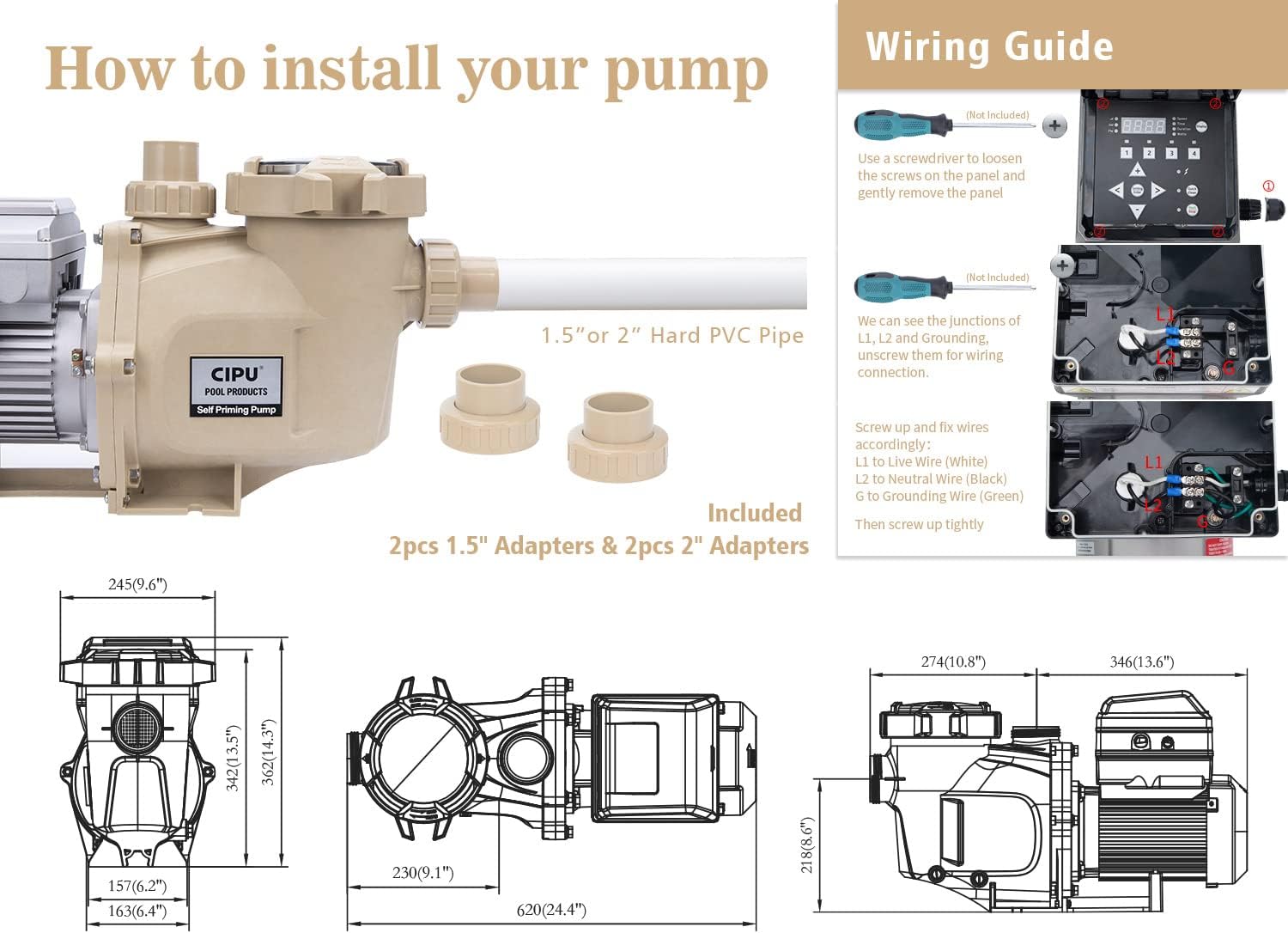 CIPU Variable speed pool pump has all outstanding features as a household filter pump you need. The industrial Heavy-duty motor (PMSM) and upgraded coating provide quieter, cooler, more efficient operation. It is ideal for use with spas and pools of all types and sizes, hot tubs, ponds, and in-floor cleaning system. This is a great replacement pump for your pool in this Summer. Compatible with different brands or system you have before.