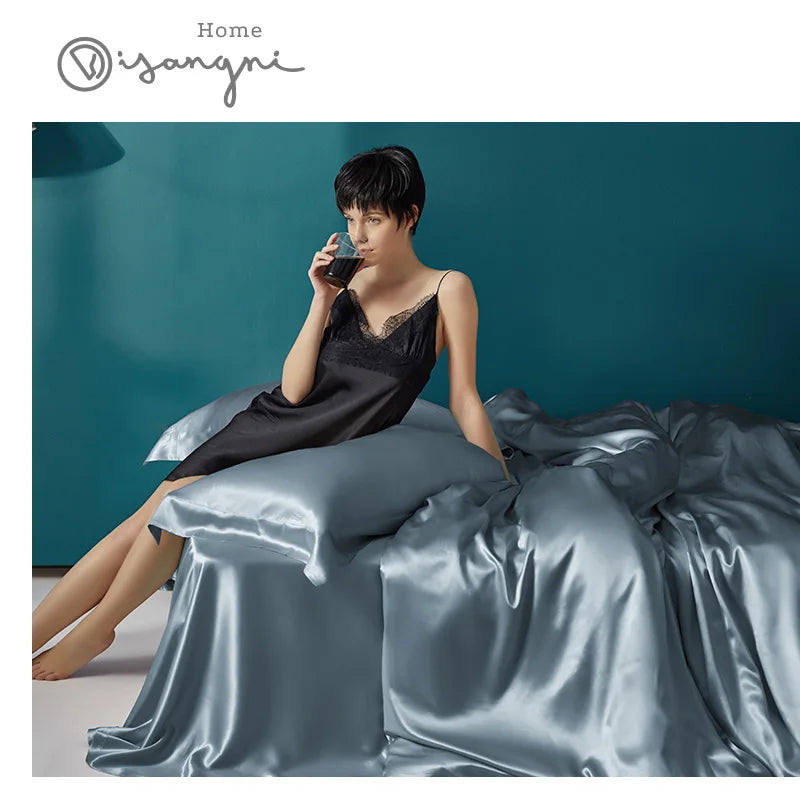 100% Natural Mulberry Silk Bedding Set - 1 Duvet Cover, 1 Sheet, 2 Pillowcases - Double-Sided Pure Silk - Luxurious, Soft, and