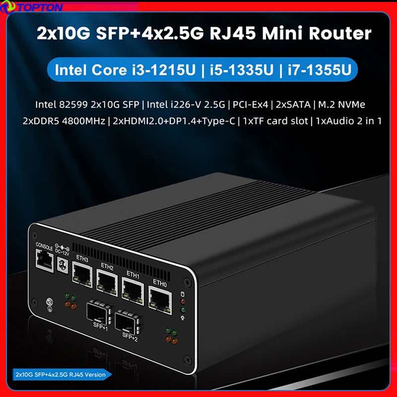 13th Gen Firewall Router Intel i7 1355U i5 1335U 2*10G SFP+ Optical 4x i226-V 2.5G Mini PC 2*DDR5 2*SATA 4*4K Proxmox Host
