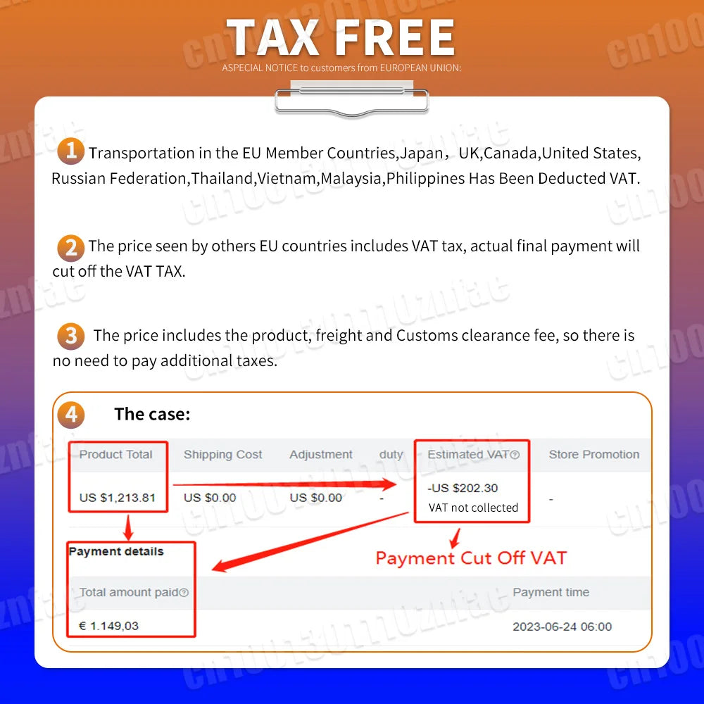 1 . VAT IS INCLUDED in our price ! ! Due to systematic reason ,some of country from you will see extra VAT added on our price, but it won't appear when proceeding to ACTUAL PAYMENTPAGE!!)