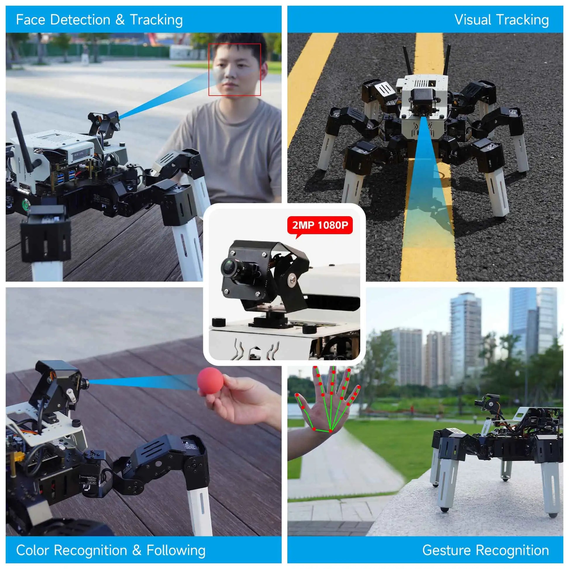 Composed of 35KG bus servo, 2MP 1080 HD camera, 9900mAH large-capacity battery, professional expansion board and other high-quality accessories.