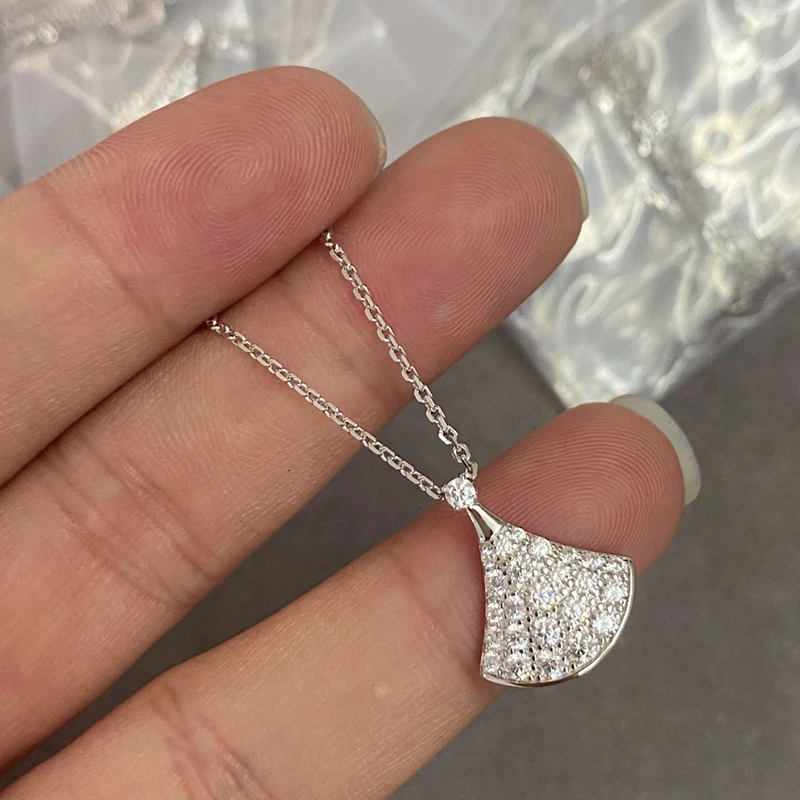 18K gold AU750 fan necklace 0.2 carat genuine diamond high-end jewelry Valentine's anniversary party gift for women