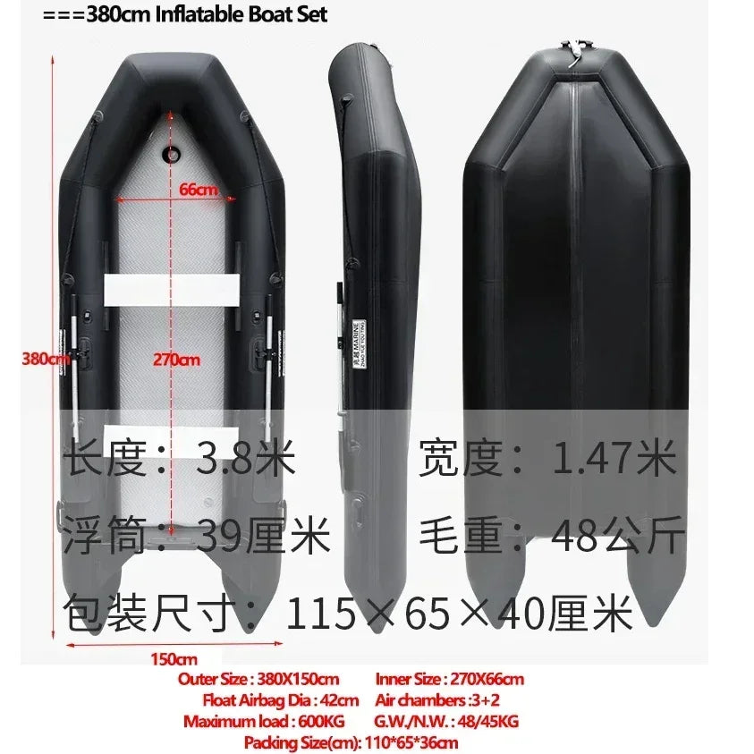 MMOOKA 2.3~3.8m Inflatable Boat with Air Deck Set 1.2mm PVC Assault Boats with Anti-collision Speed Raft Kayak Rowing Accessories