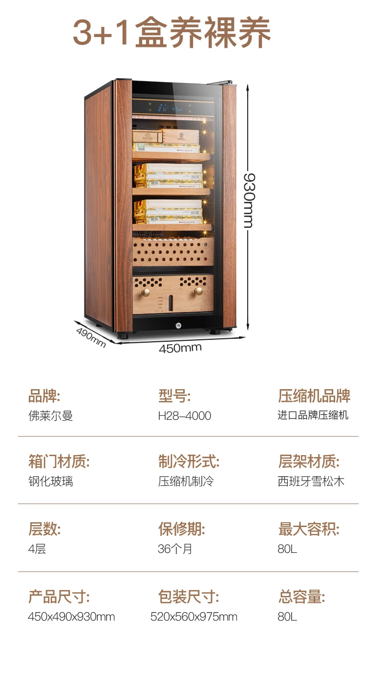 2021 New Cigar Cabinet Humidor Led Light Cooler Humidor Cabinet Spanish Cedar Wood Shelf Cigar Cooler Electric Humidor EC-028