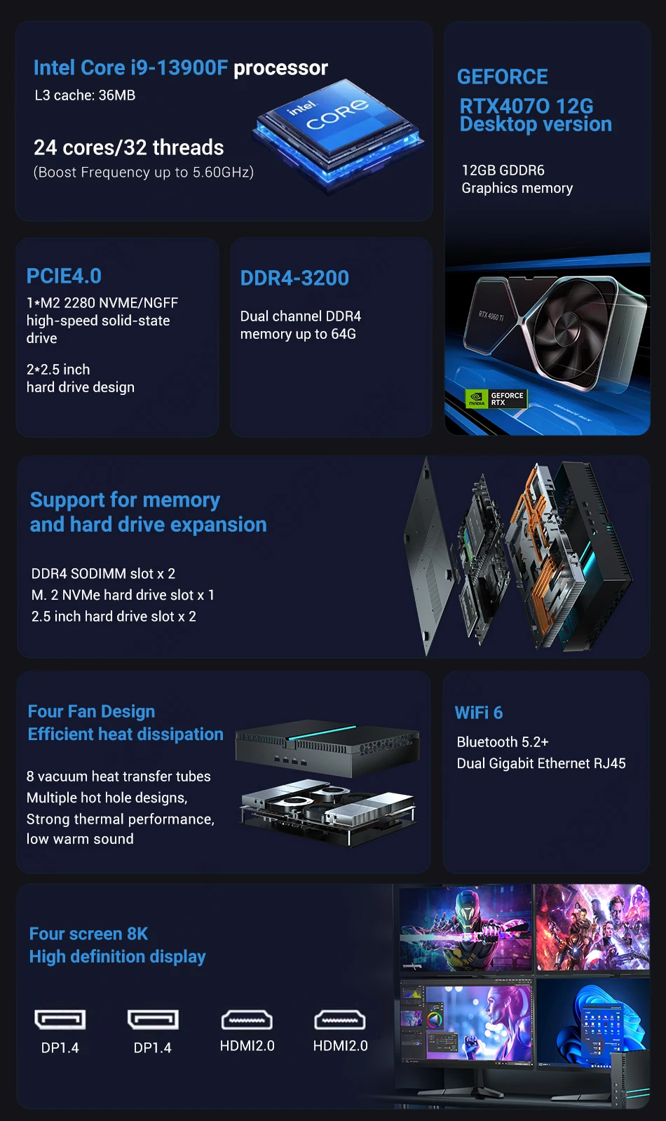 2023 NEW 13th Gen Mini Gamer Computer i9 13900F NVIDIA RTX 4070 12G Gaming Mini PC i7 PCIE4.0 Windows 11 Tower PC Desktop WiFi6