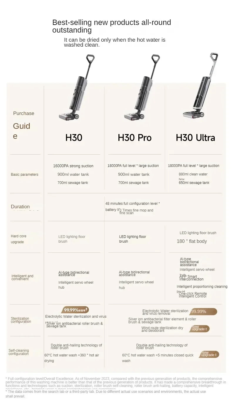 2024 New Dreame H30 Ultra Hot Washing, Drying, Sterilization, Suction and Drag Washing Integrated Household Vacuum Cleaner