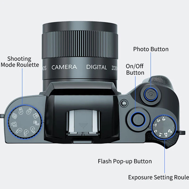 16X Zoom 64MP DSLR HD WIFI Cameras 4.0 Inch Touchscreen 4K Digital Camera for Photography Video Live Streaming Vlogging