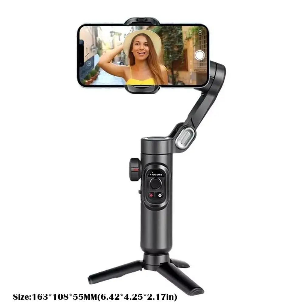 Advanced 3-Axis Stabilization: Ensures smooth and steady footage for professional-quality videos. Versatile Shooting Modes: Multiple shooting modes perfect for vlogging and live streaming. User-Friendly Design: Ergonomic handle and intuitive controls for effortless operation. Long Battery Life: Extended battery life for uninterrupted shooting sessions. Universal Compatibility: Compatible with most smartphones, making it ideal for all your filming needs. Specifications: Name:Gimbal Stabilizer Material:ABS Size:163*108*55MM(6.42*4.25*2.17in) Color:As the picture Package Included: 1*Gimbal Stabilizer