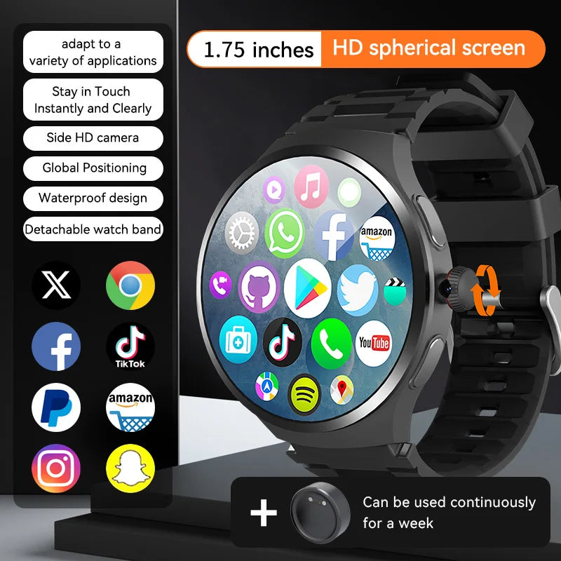 MMOOKA 2025 NEW VP50 Smartwatch 4g/5g Sim Card Android 10.0 System 180° Pull out Camera GPS WIFI Play Game Whatsapp Tiktok Smart Watch
