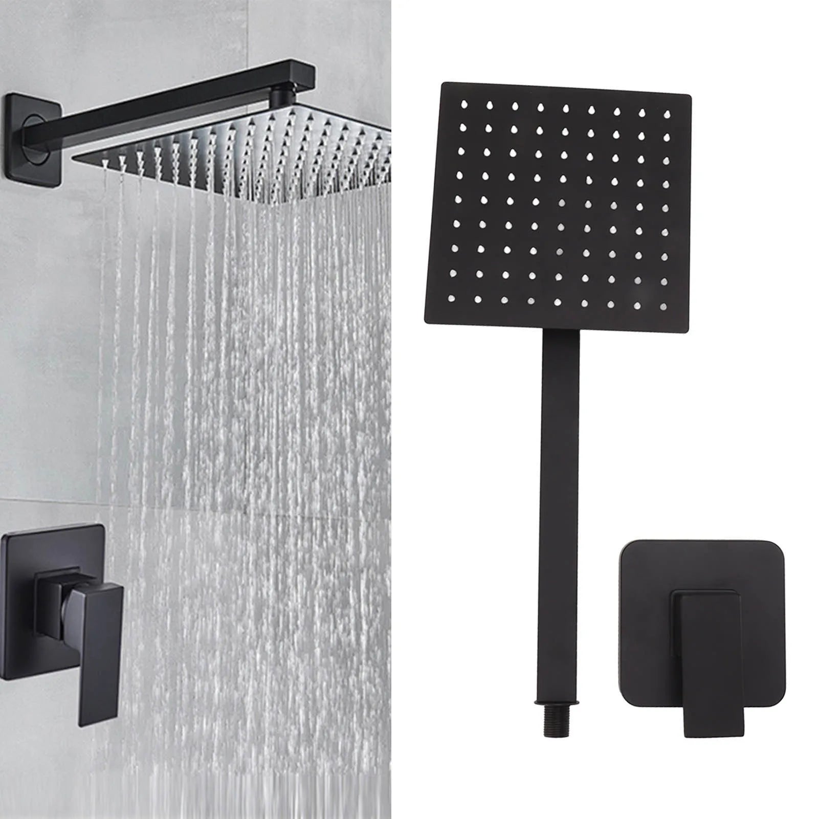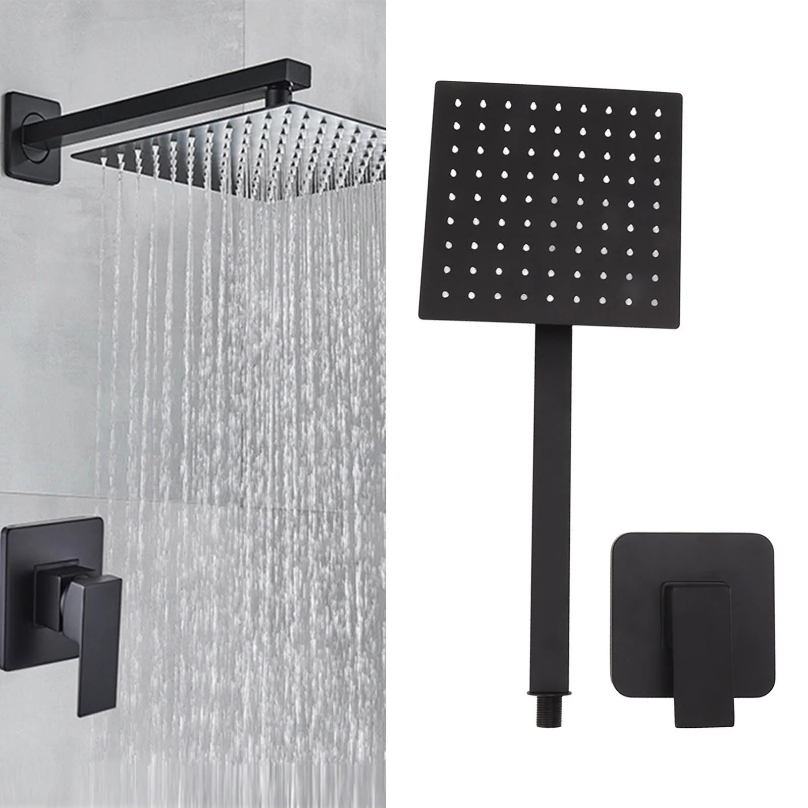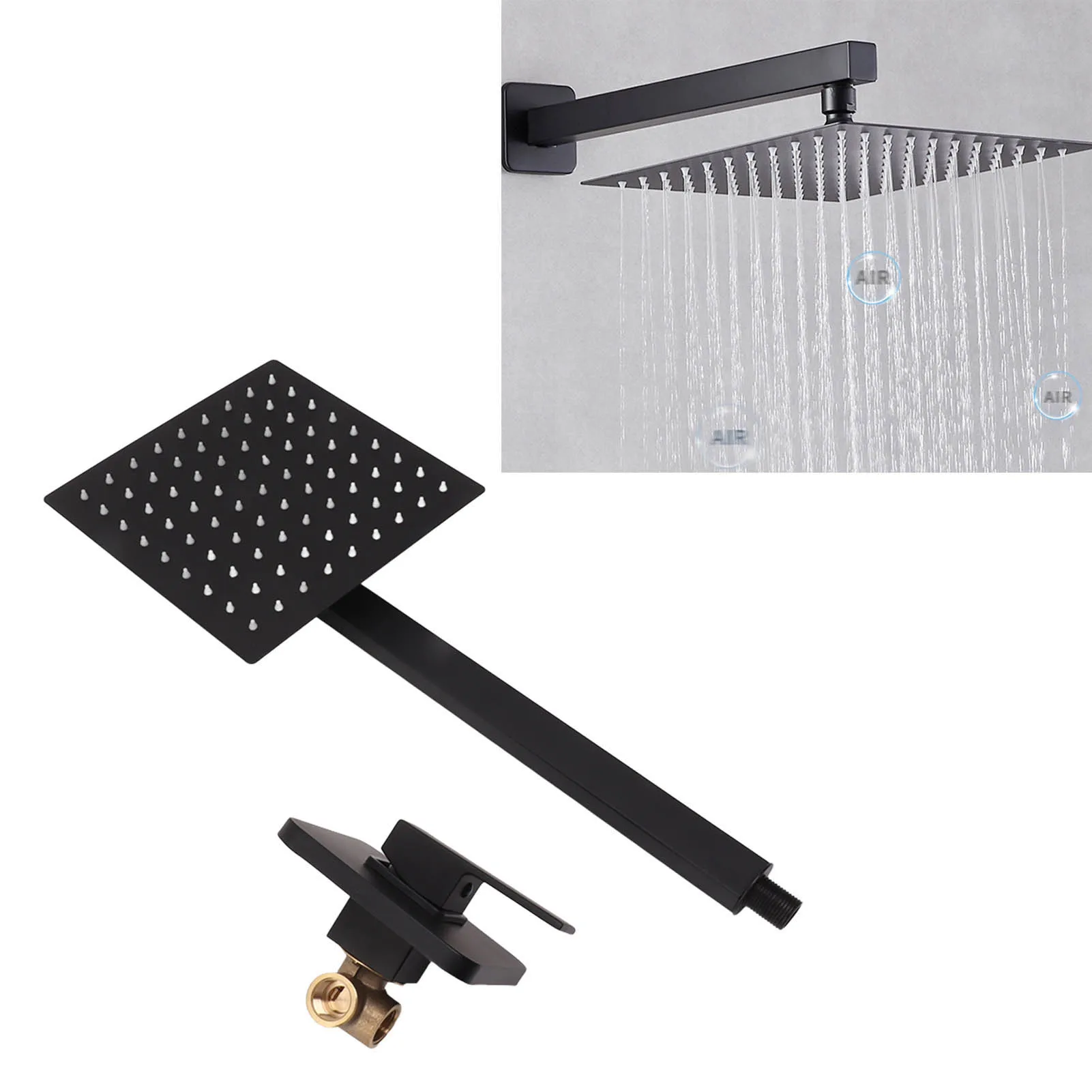 20x20cm Square Rain Shower Kit Single Handle in Wall Waterfall Shower Head Kit Black Bathroom Home Accessories