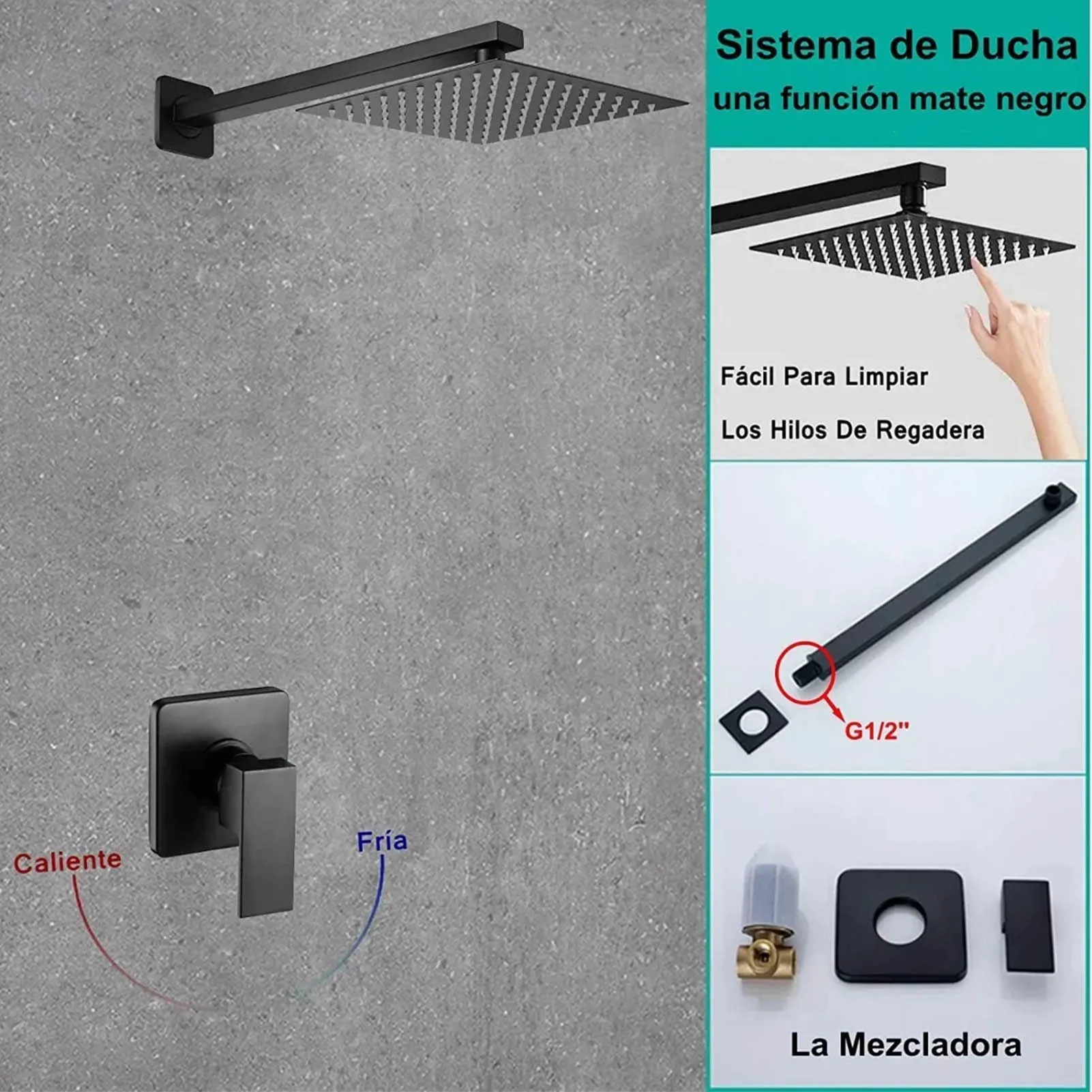 1. Material: Square shower head made of brass and stainless steel materials, black matte finish, not easy to rust, durable2. In Wall Design: Use in wall design to keep your bathroom clean, beautiful and space saving. This is a modern bathroom style