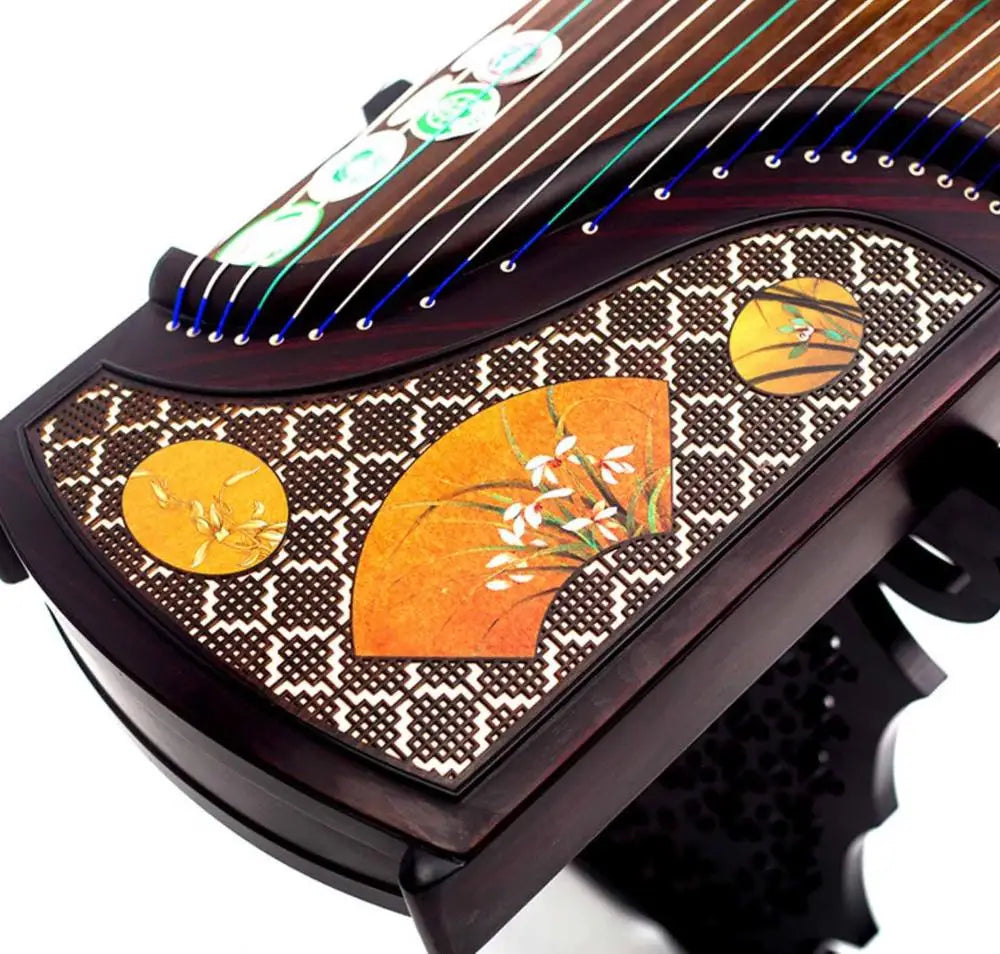 21-string 163cm high-end Guzheng to send a full set of accessories to professional players and examiners Brand: Yellow River Wind Place of Origin: Henan, China Craft: skewer carving craft, silk painting craft Panel: Lankao first grade paulownia Floor: Lankao clear water floor Zheng Code: Rosewood Zheng Strings: Tinned Piano Strings The head of the Zheng adopts skewer carving technique combined with silk painting technique, and the strings are made of steel wire strings, which are durable, have excellent hand feeling and outstanding sound quality.