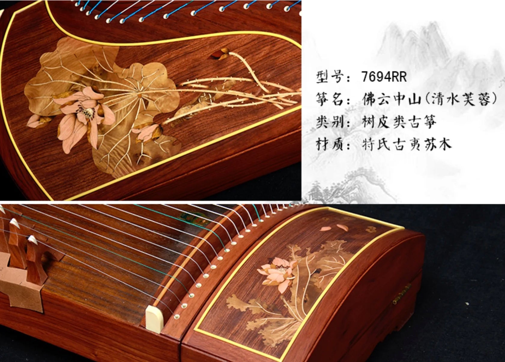21 String Guzheng Dunhuang 7694RR Qingshui Hibiscus Chinese Musical Instrument