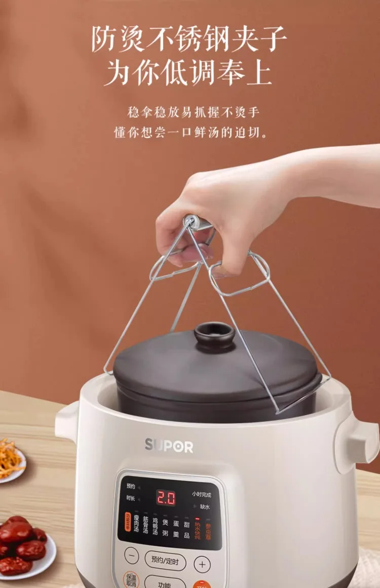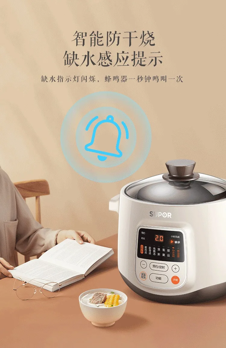 220V Supor Automatic Electric Stew Pot, Separated Water Stew, Household Porridge Cooker, Safer and Healthier