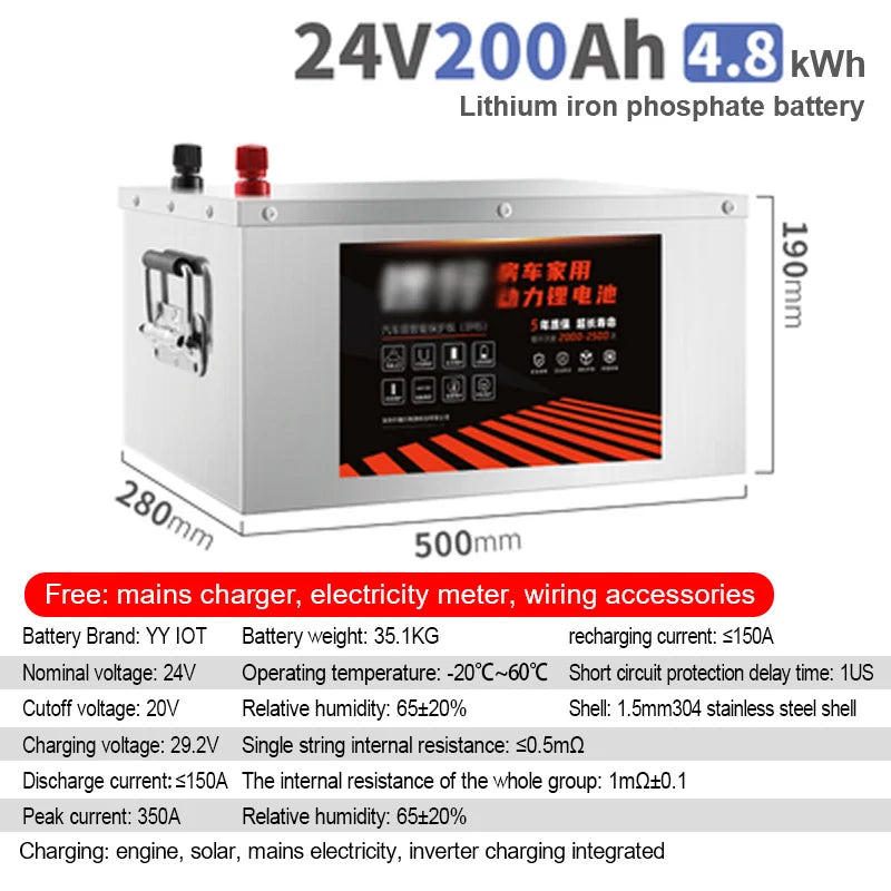 24V RV LiFePo4 Lithium Battery Outdoor Large Capacity 100AH 200AH 300AH 400AH 500AH 600AH 800AH Solar Charging