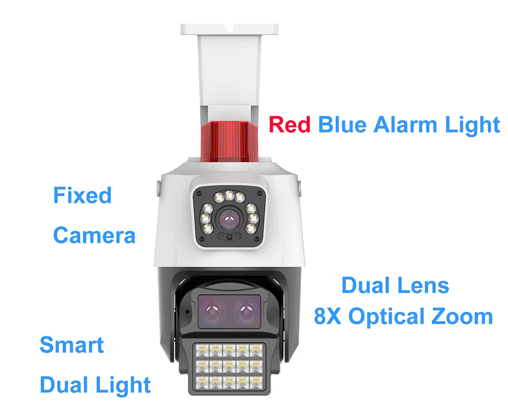 Newest AI 6MP PTZ Camera 8X Zoom with Red Blue Alarm Light