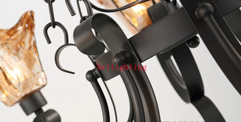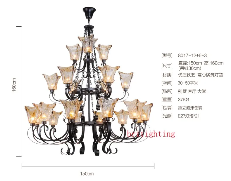 3 Layer Luxury Large Black Chandelier Lighting American Wrought Iron Long Chandelier Villa Hotel Living Room Retro Hanging Lamps