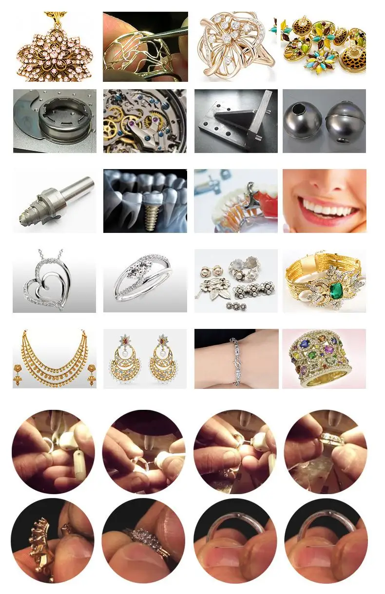 Widely used in tiny parts of precision machining,rings, pendants,bracelets, dentures, and cellphone charger interface, hardware,clock, sports, golf, medical devices.Titanium alloy ornaments, frames, especially for gold and silver jewelry fill the holes, weld line, embedded parts welding.