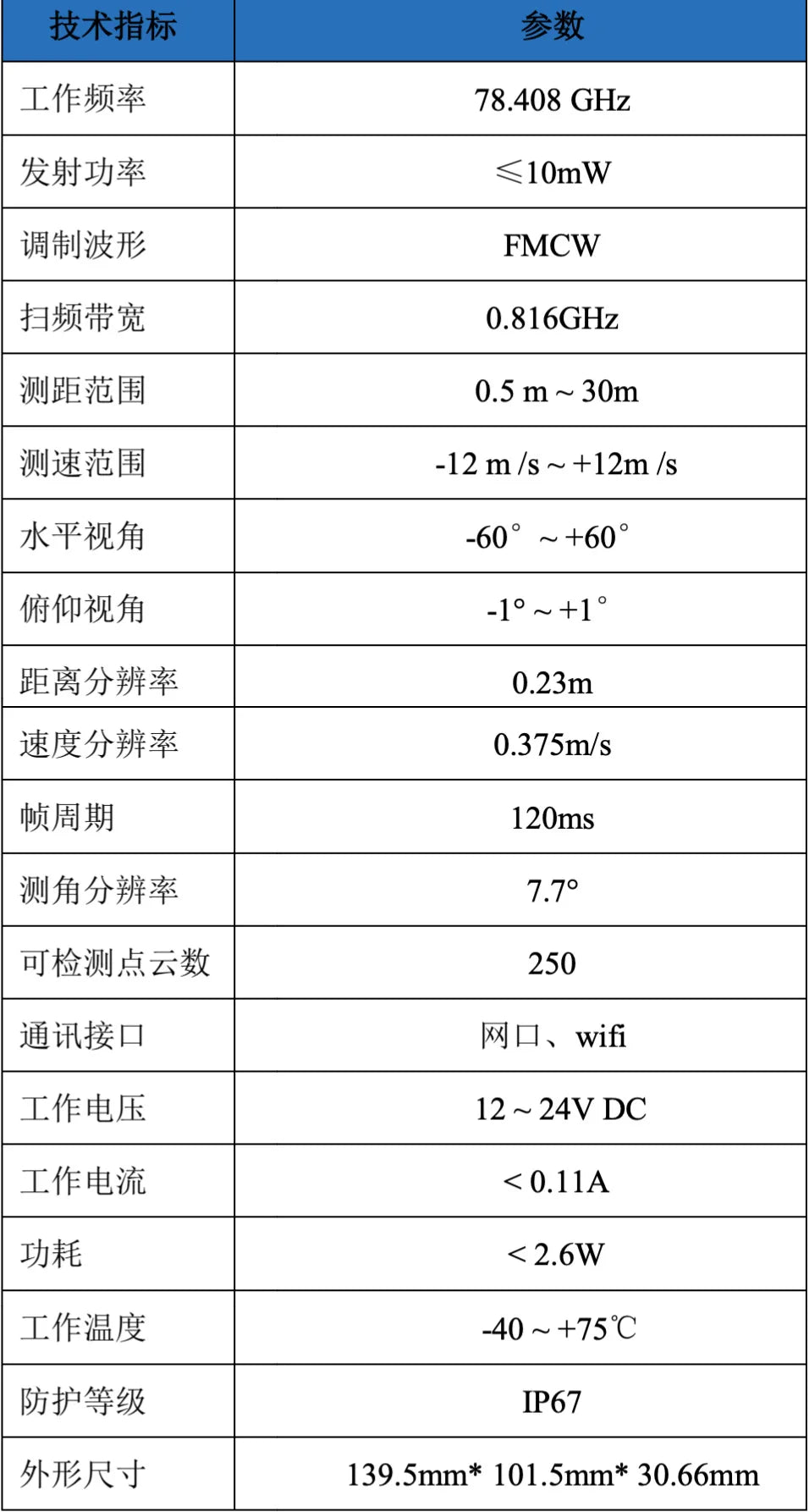 The main features of the XW-BZ-RD302 millimeter wave obstacle avoidance radar :