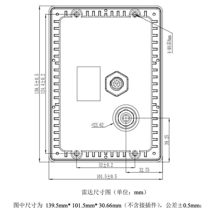 Model 2.80GHz millimeter wave/AGV obstacle avoidance radar/range of 30 meters/field of view angle of 120 degrees/interface CAN bus+RS485+2 switching values