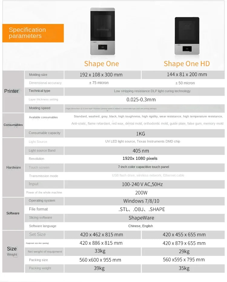 3D Printer Shape One HD Light Curing DLP Industrial Grade High Precision Large Size Anime Garage Kits Red Wax