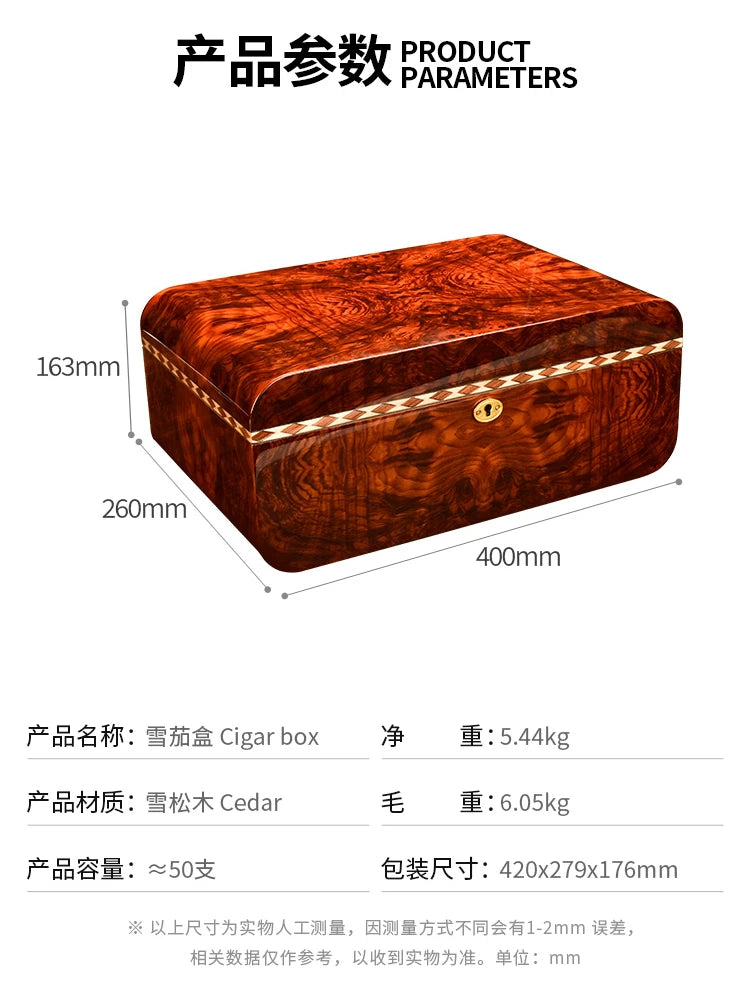 400x260x163mm Cedar Wood Cigar Humidor Professional Capacity 50 Cigarettes Storage Case Piano Paint Cigar Cabinet Cool Gift Box