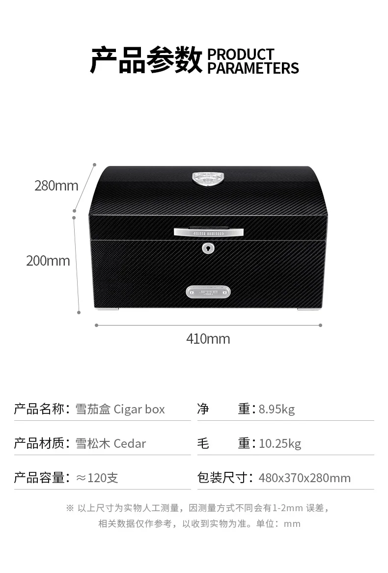 410x280x200mm Cedar Wood Cigar Humidor JIFENG Large-Capacity 120 Cigar Case Professional Carbon Fiber Multi-Zone Storage Box