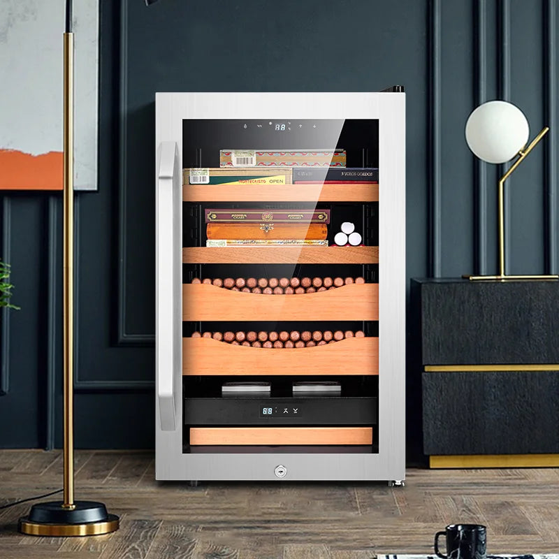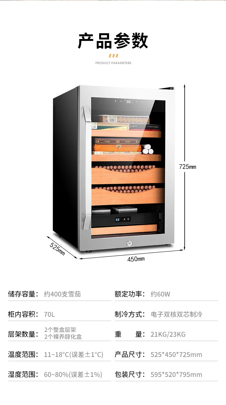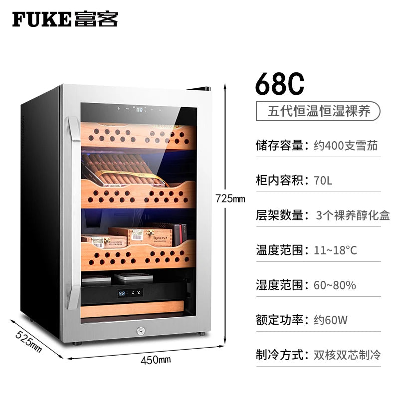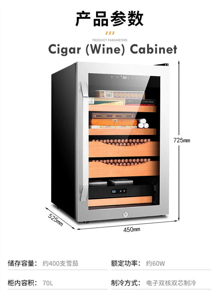 450x525x725mm Cigar Cabinet FK-68CW1 Capacity 400 Silvery Cigars Humidor Intelligent Temperature Control Moisturizer Storage Box