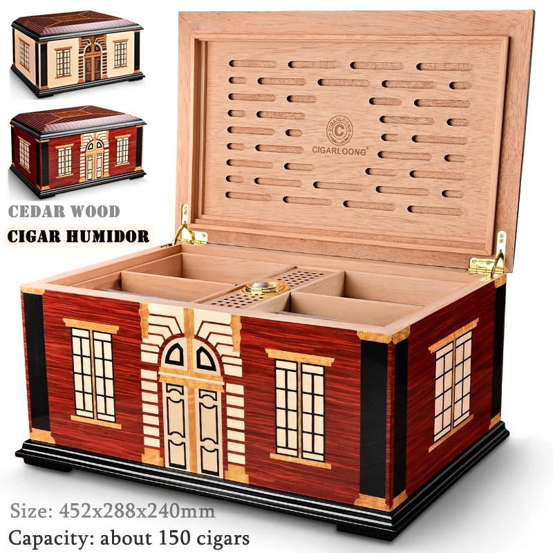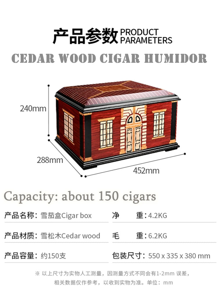 452x288x240mm Cedar Wood Cigar Humidor Professional Capacity150 Cigarettes Case Multi-Zone Storage Piano Paint Cigar Cabinet Box