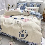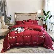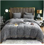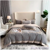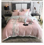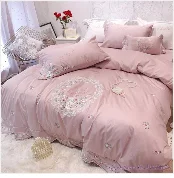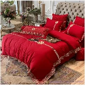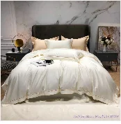 Heavyweight silk , French silk cotton lace bed set with four pieces