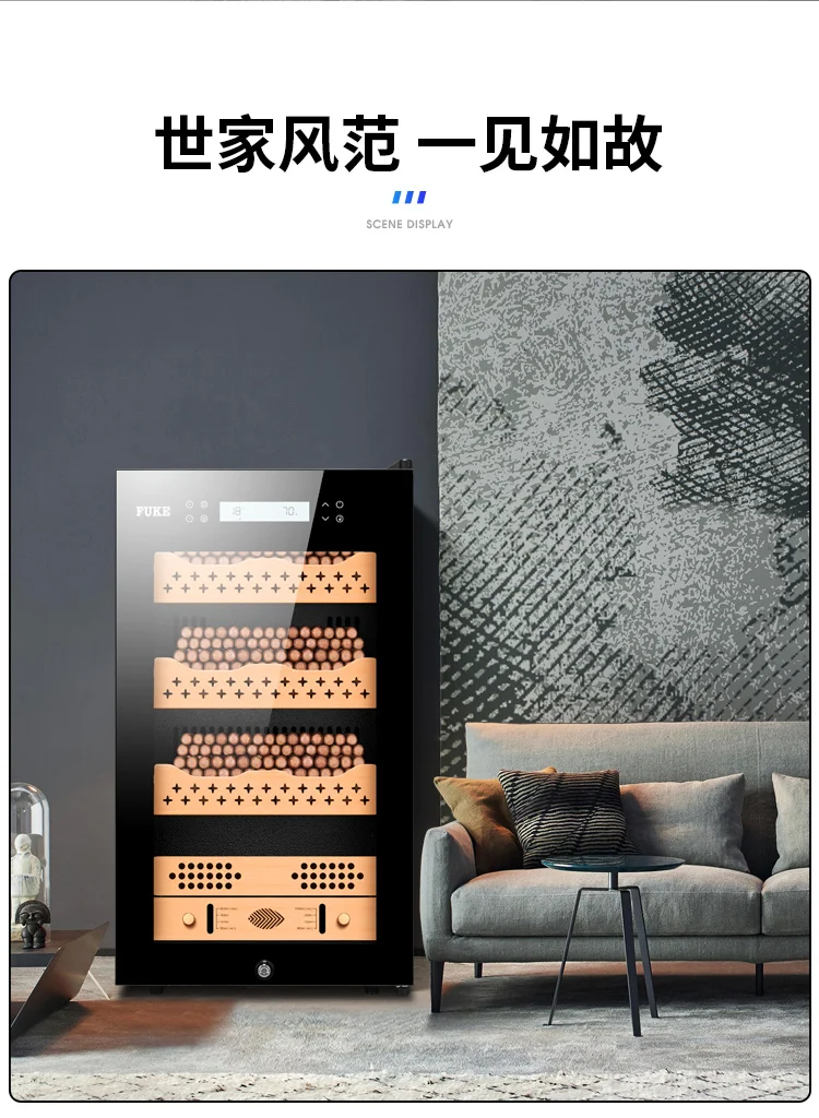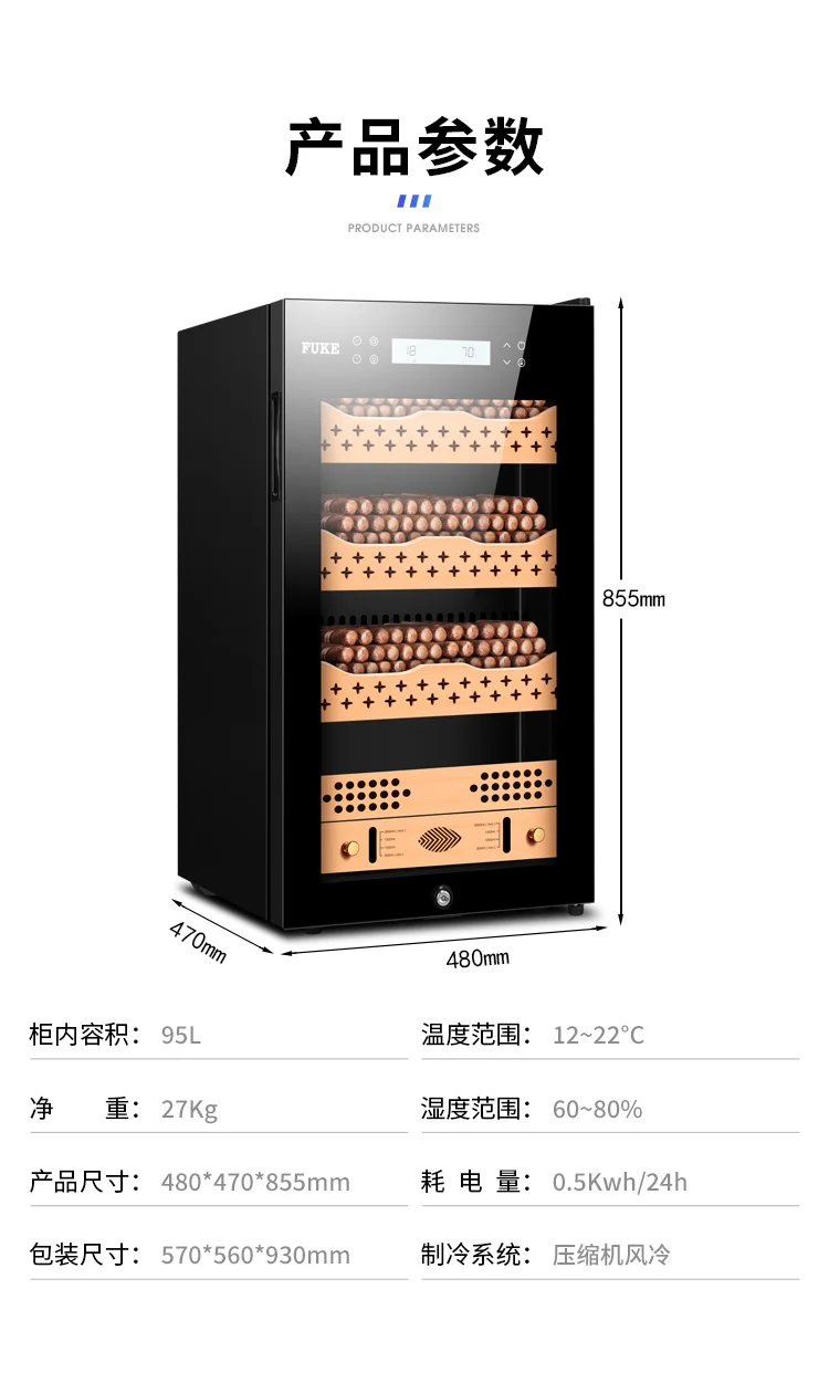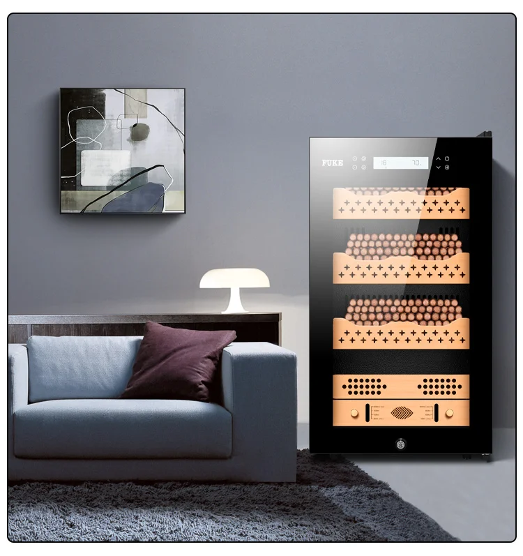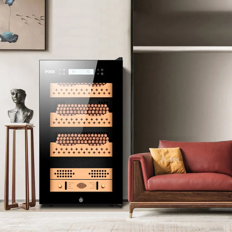 480x470x855mm Cigar Cabinet FK-28C Capacity 300-400 Black Cigar Humidor Intelligent Temperature Control Moisturizer Wine Storage