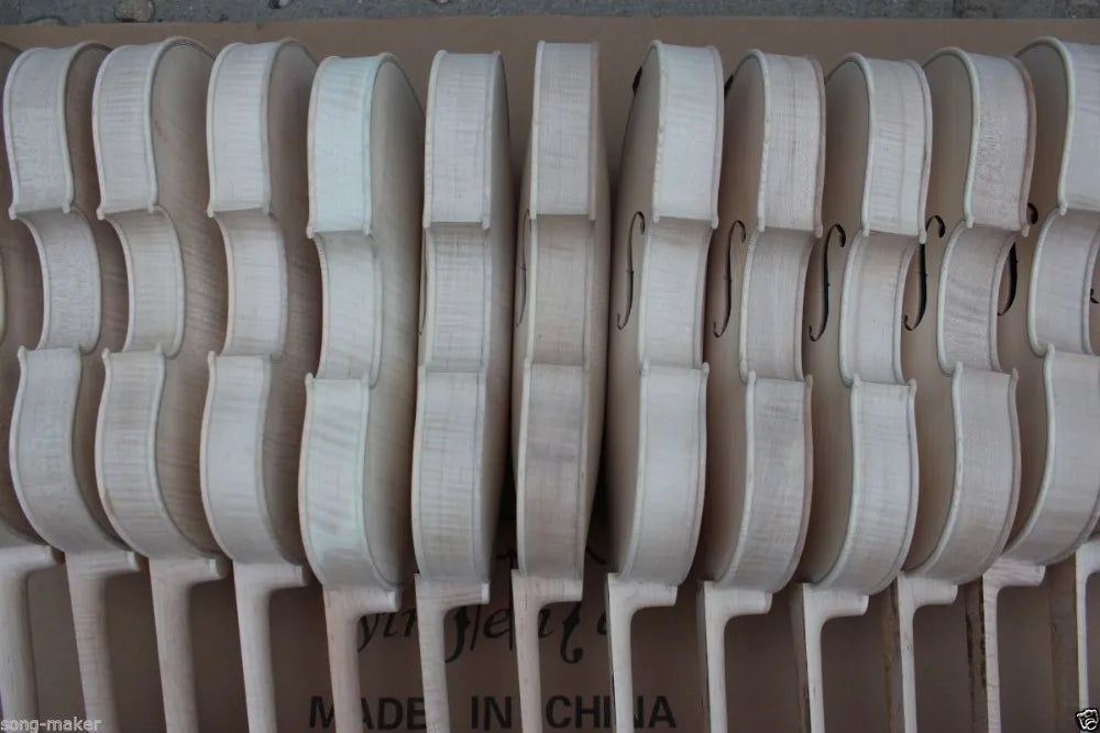 5 pcs unfinished violin 4/4 .flame maple back + Russian spruce top, do not include violin neck *This is brand new and hand work 4/4 quality unfinish violin. |