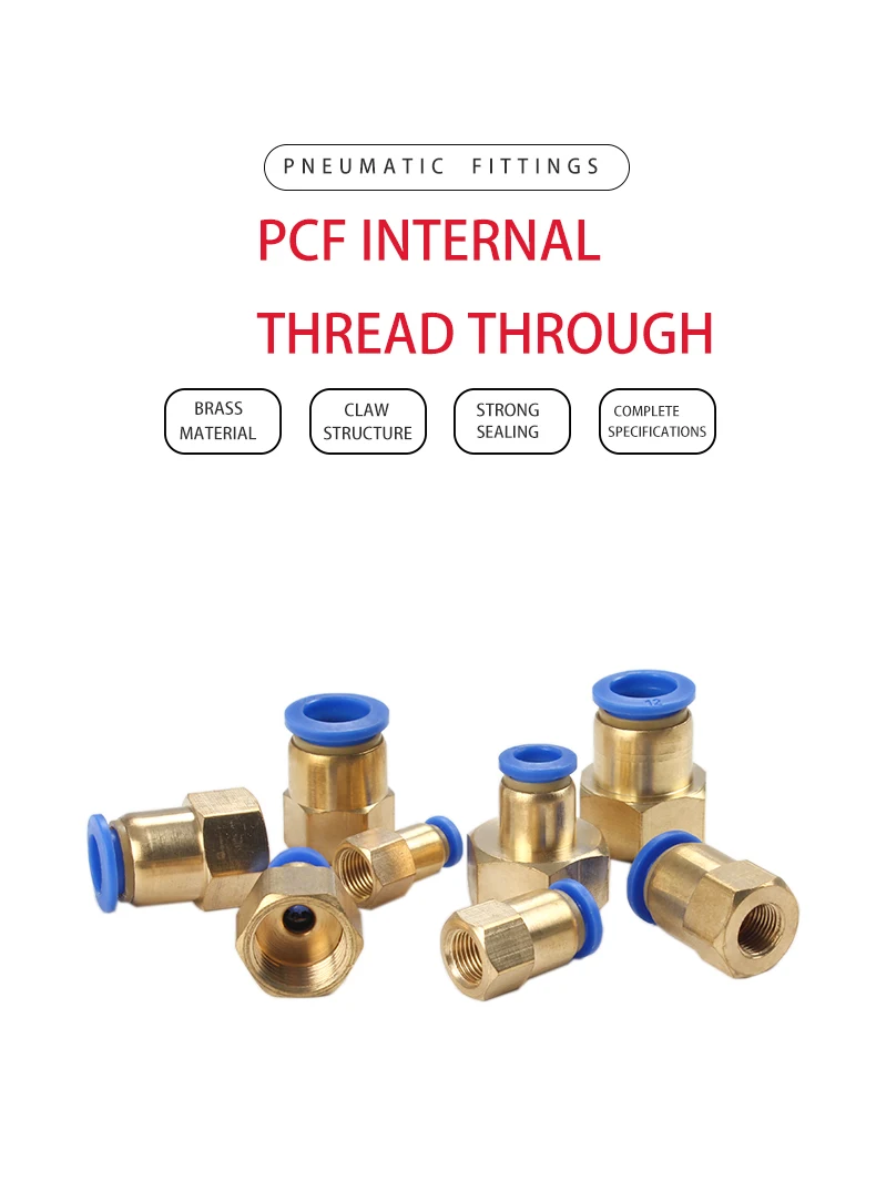 500Pcs Pneumatic Component Internal Thread Straight Through Quick Joint Connector PCF4-01 / 6-03 / 8-02 / 10-04