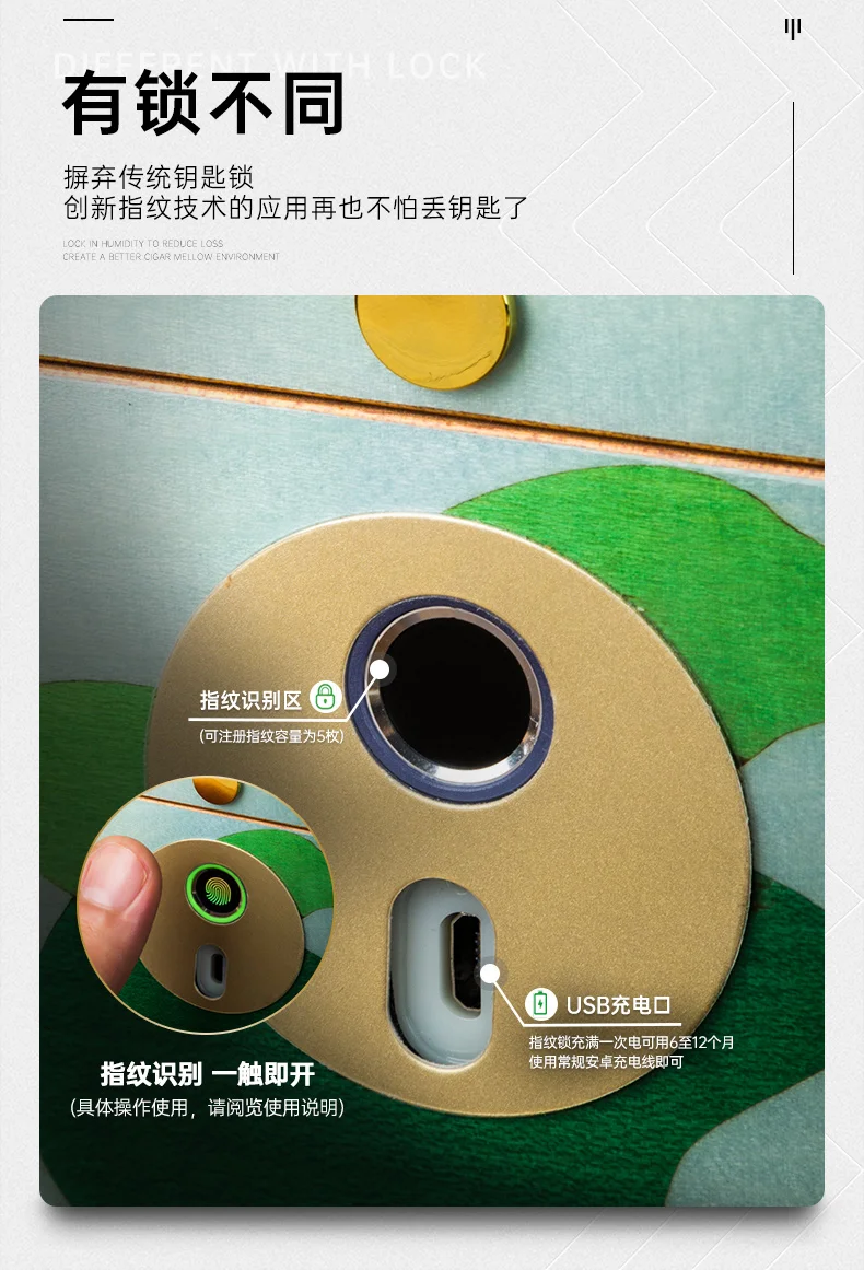 500x330x160mm Fingerprint Lock Cigar Humidor Cedar Wood Capacity 100 Cigarettes Storage Box Cool Design Moisturizing Cigar Case