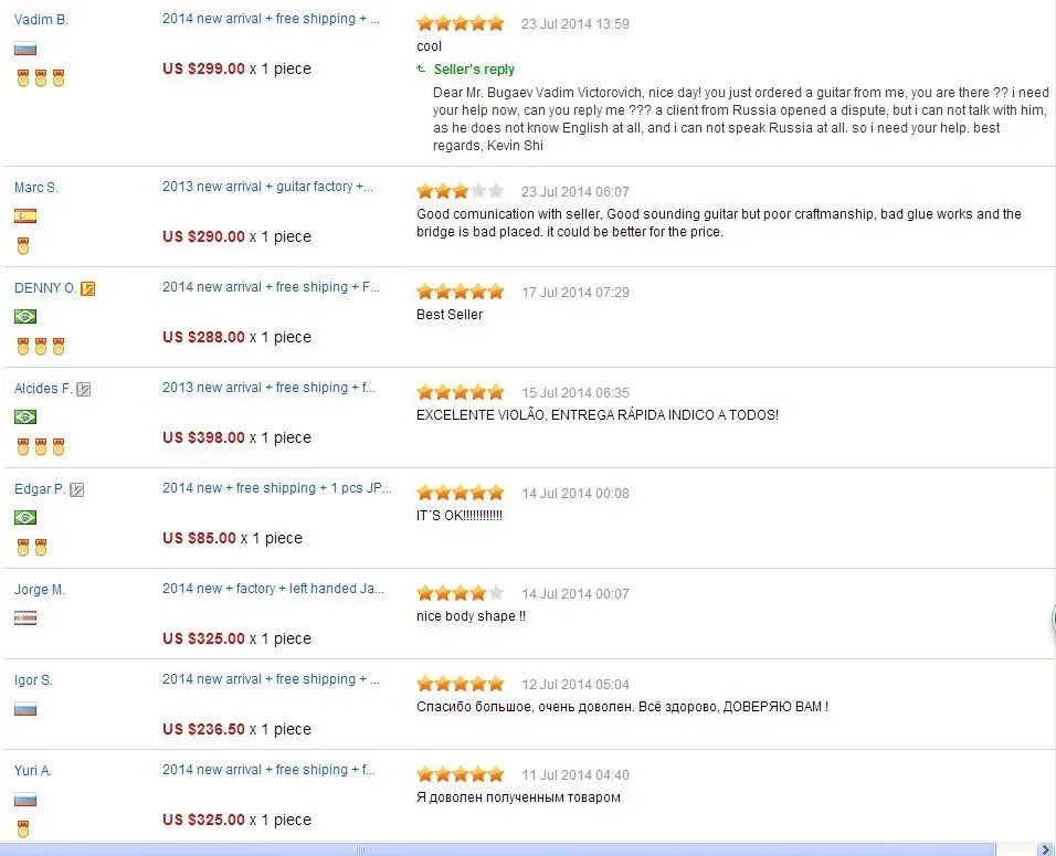 We greatly value your opinion and suggestions as buyer, we will do our best to receive the most positive feedback available. if you don't like my guitar for any of a reason, please feel free to send me your feedback, i will appreciate it much! Please contact me directly before leaving a nurtual or negative feedback!