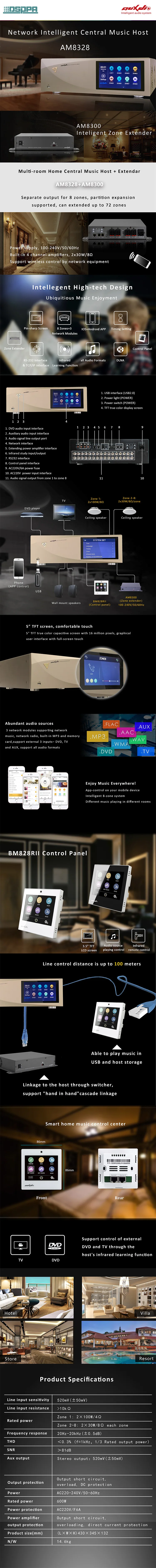 8 zone 7 inch Digital Home Music Host Intelligent Audio Sound Control Center System Multi Home Central Music Hifi Amplifier