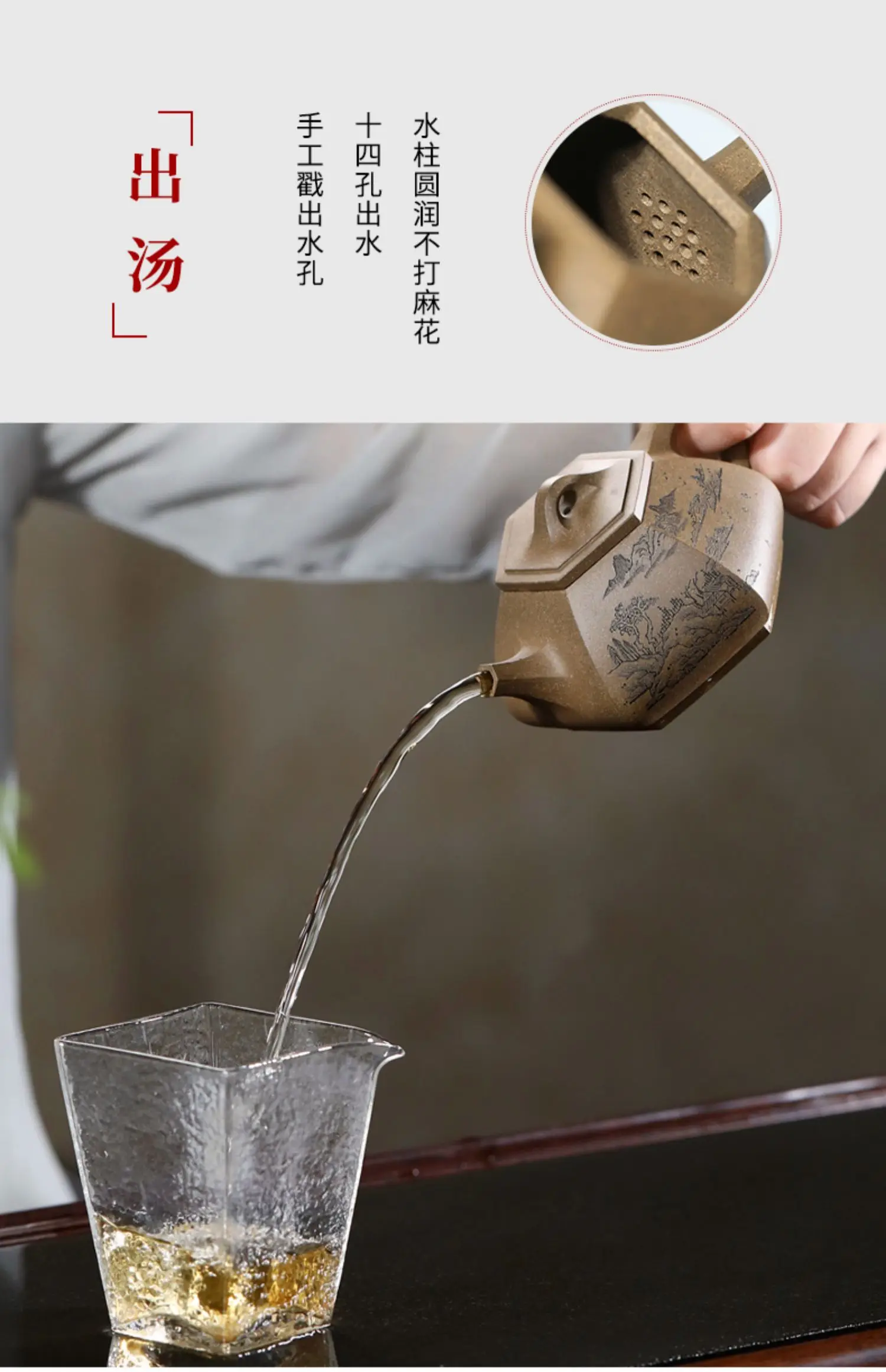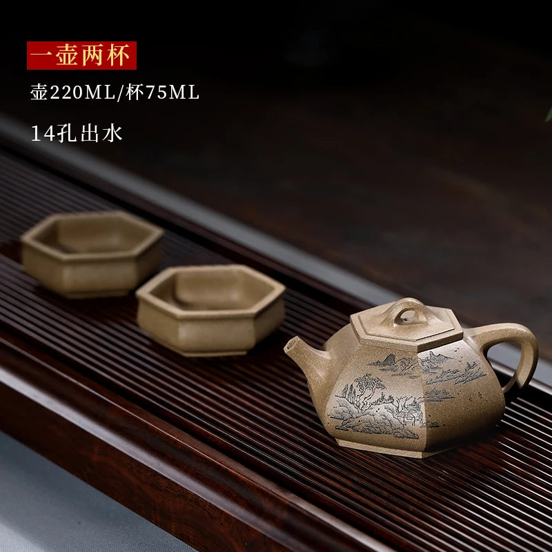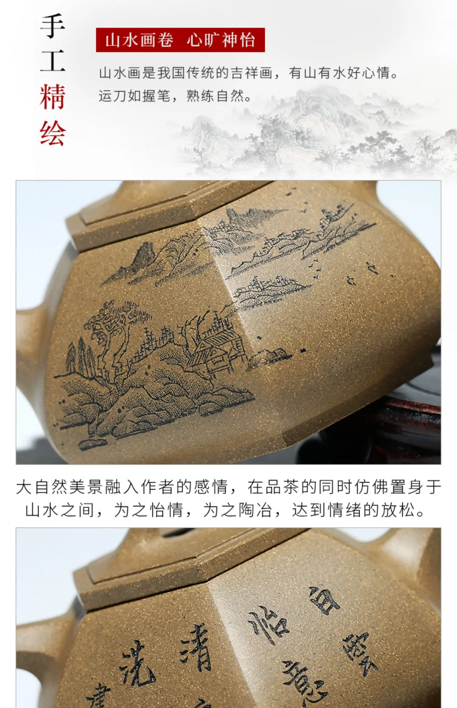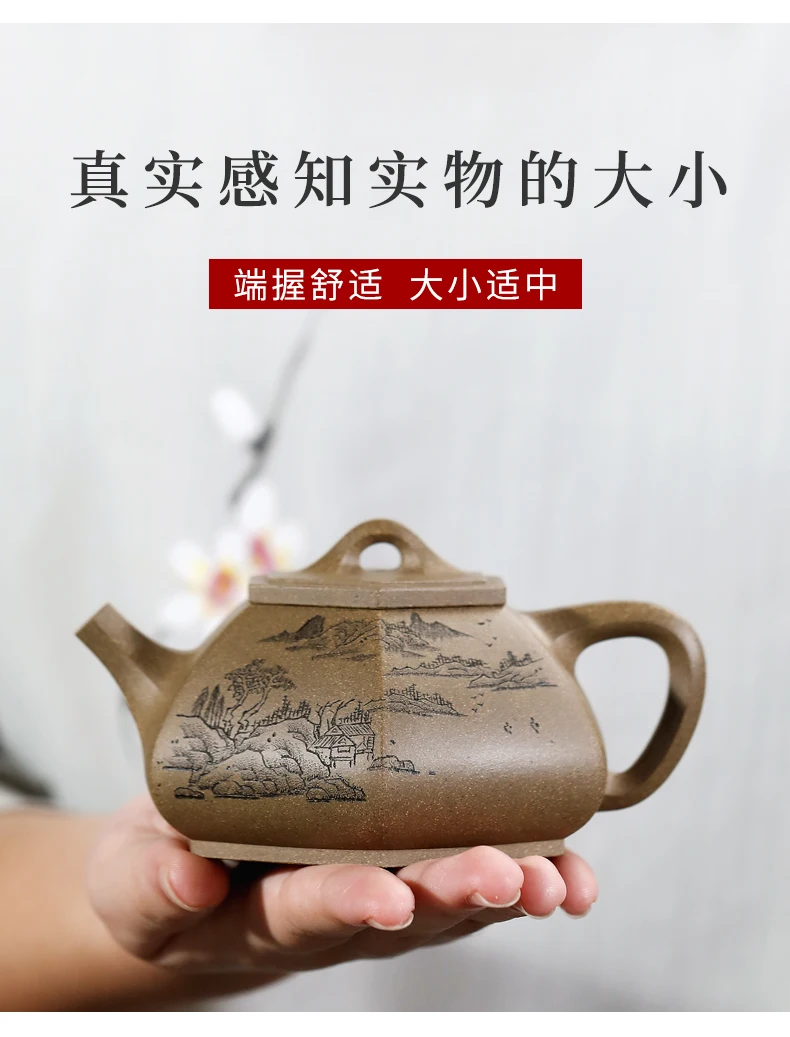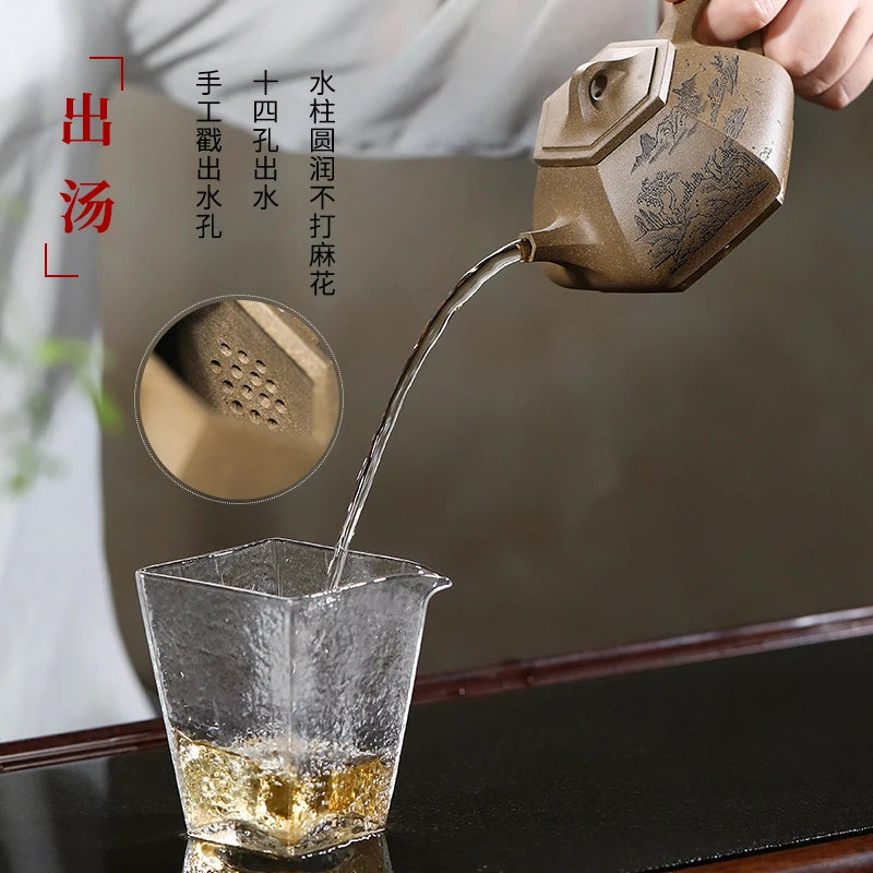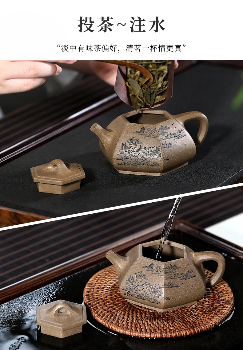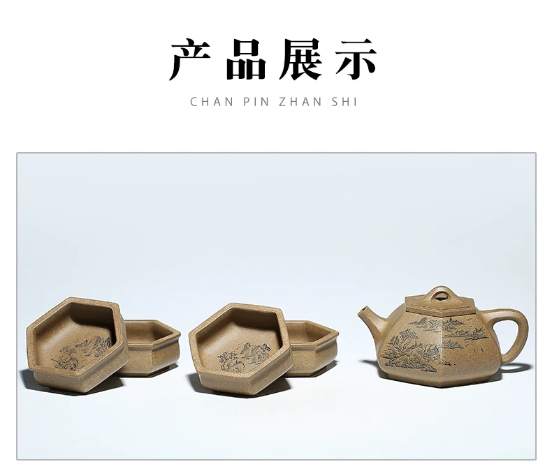 |A clay Yixing famous purple clay teapot craftsman's sketch square pot non ceramic household tea brewing set