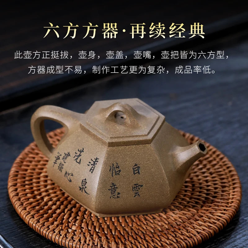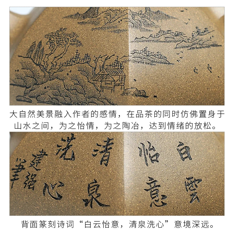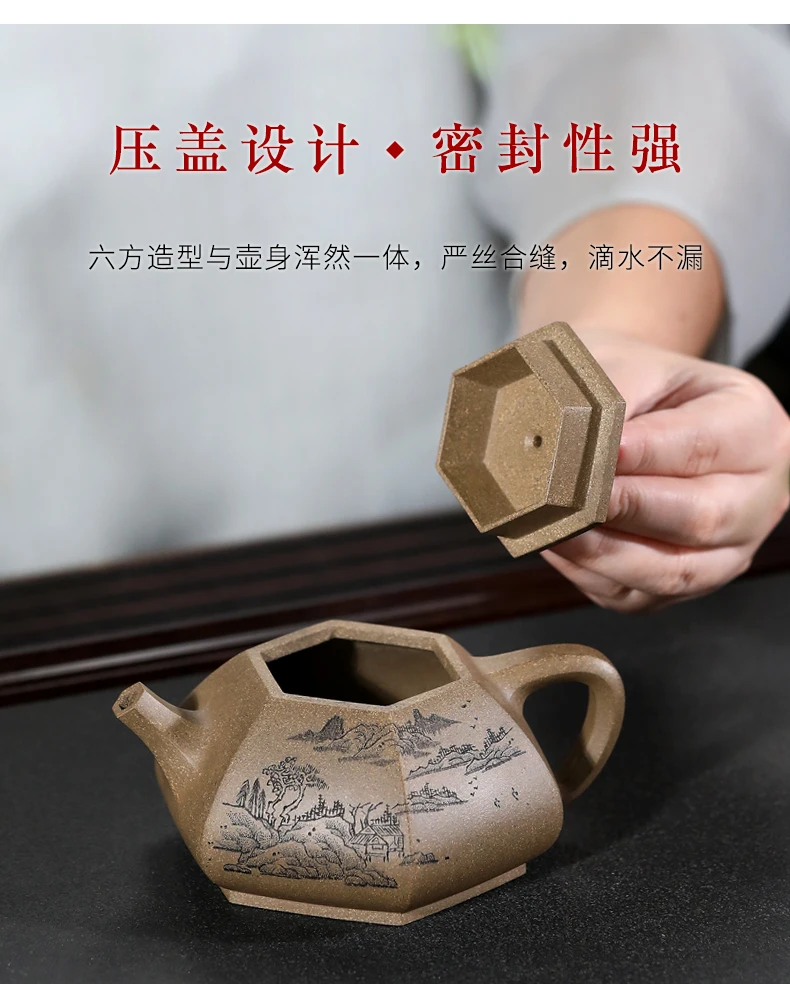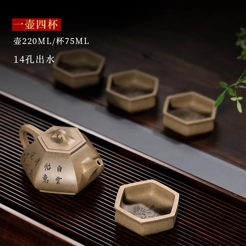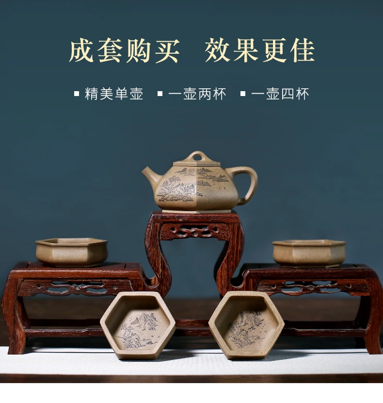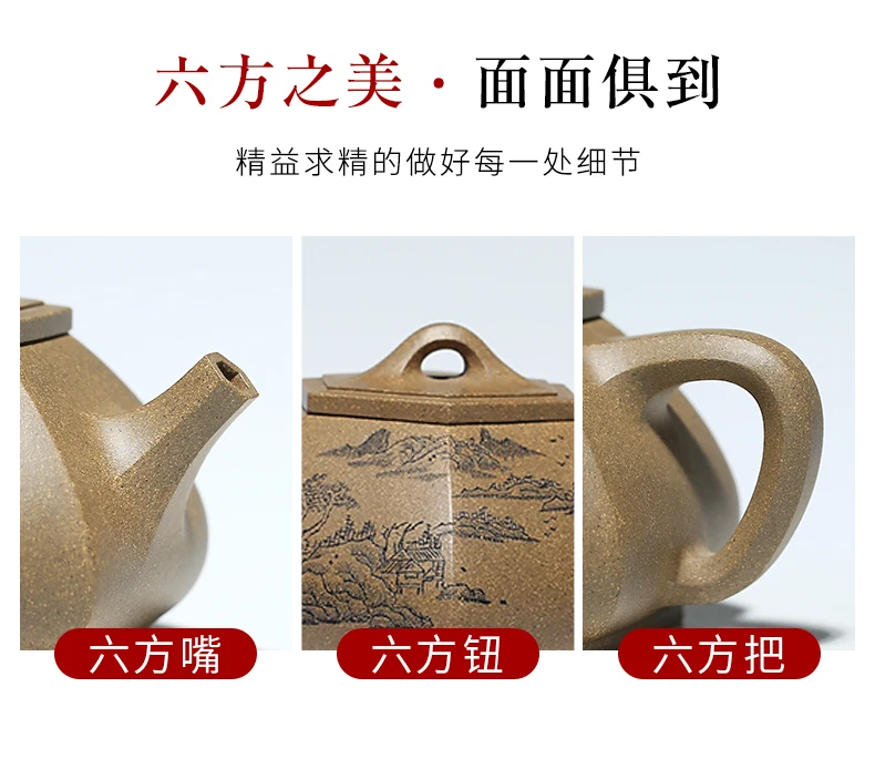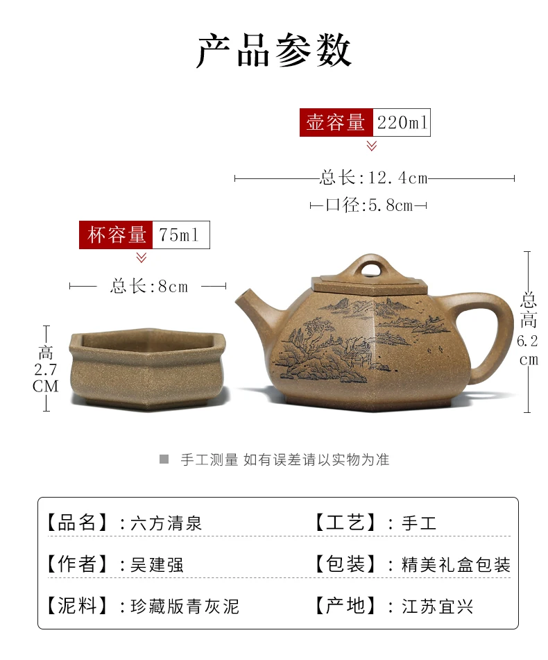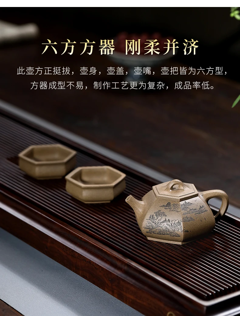 |A clay Yixing famous purple clay teapot craftsman's sketch square pot non ceramic household tea brewing set